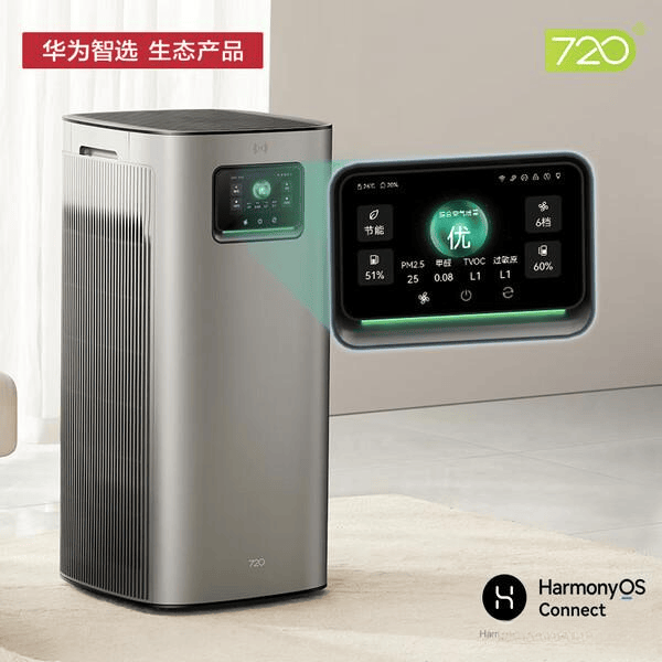 如果预算充足,华为智选720 Pro是一个不错的选择。这款空气净化器配备了高效的过滤系统,包括H13级HEPA滤材和活性炭,能快速净化室内空气中的PM2.5、异味、过敏原等有害于人体健康的物质。特别采用铂金催化分解技术,实现长效除醛,确保甲醛去除率达99%。