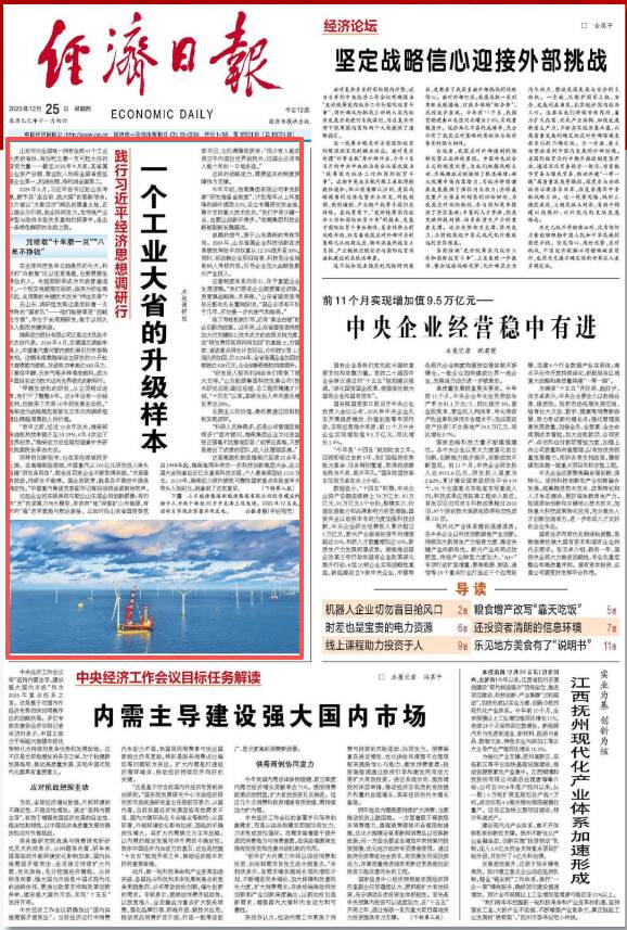 米兰体育官网入口:《经济日报》头版点赞山东:一个工业大省的升级样本